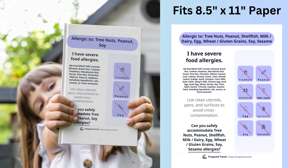 Clear allergy cards for school, camps, travel, restaurants, and daily life — available in more than 20 languages and counting.